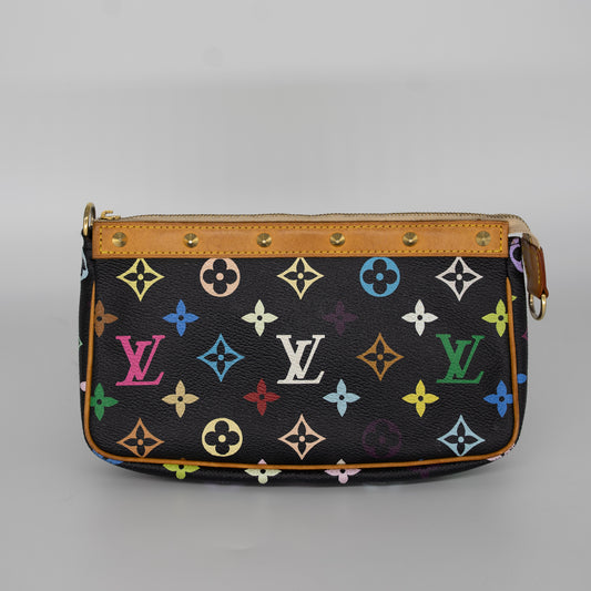 Louis Vuitton Limited Edition Takashi Murakami Multicolor Black Pochette + Crossbody Strap